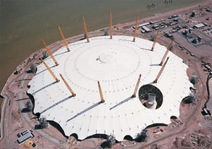 The innovative cablenet roof of the Millennium Dome in Greenwich, England